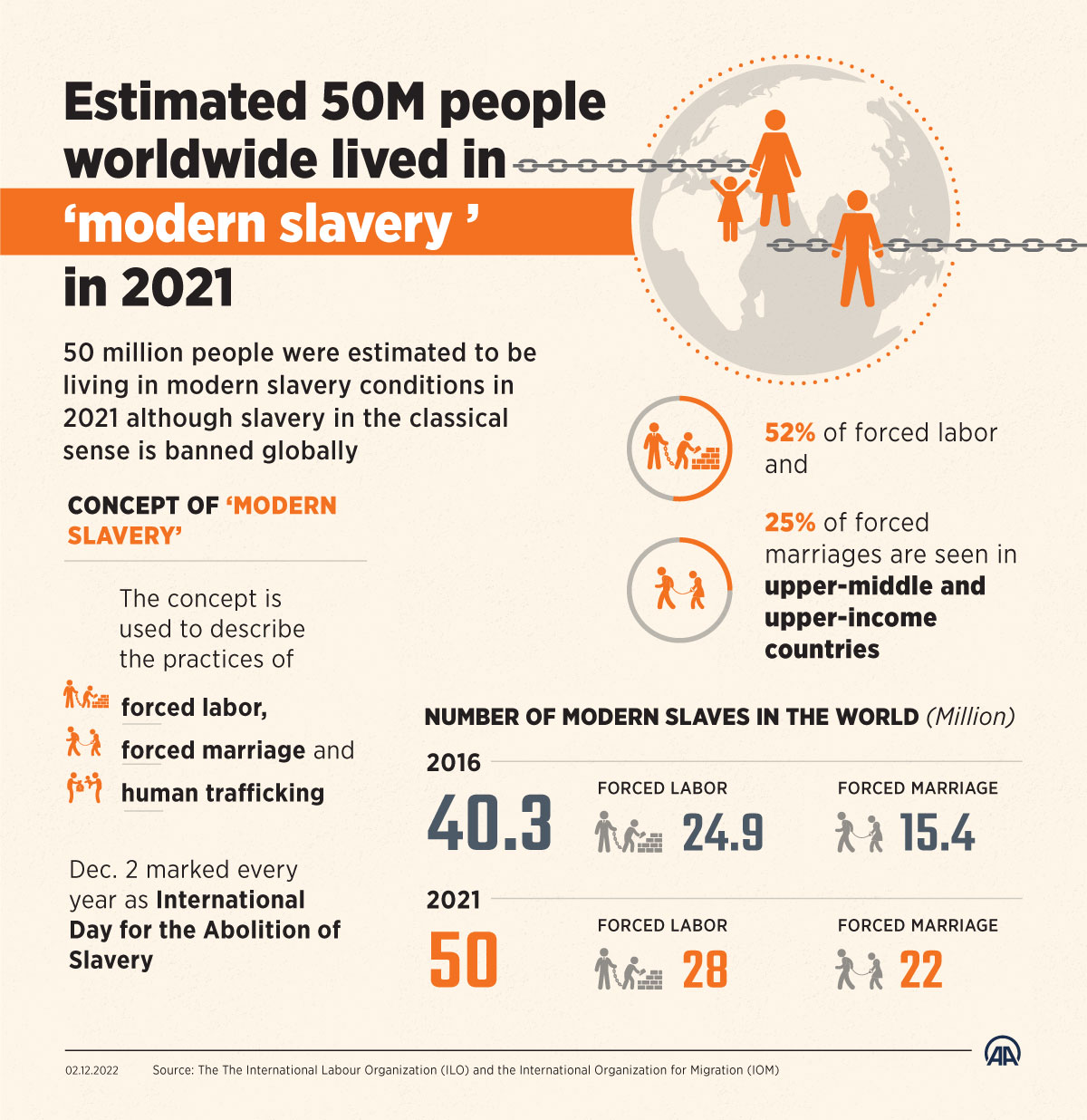Estimated 50M people worldwide lived in modern slavery conditions in 2021