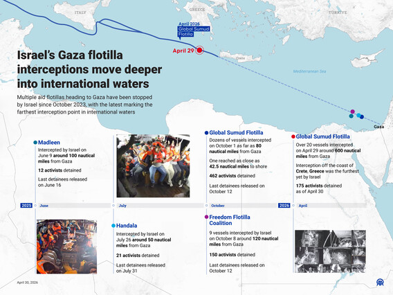 Israel’s Gaza flotilla interceptions move deeper into international waters