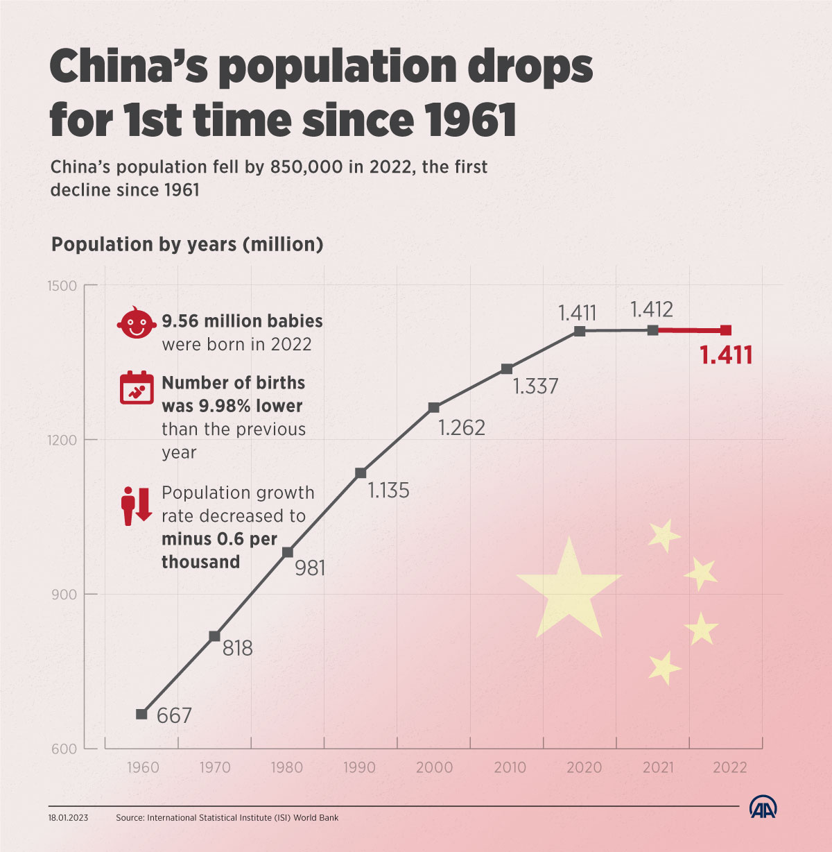 World’s largest populous nation saw total population decrease by 850,000 in 2022