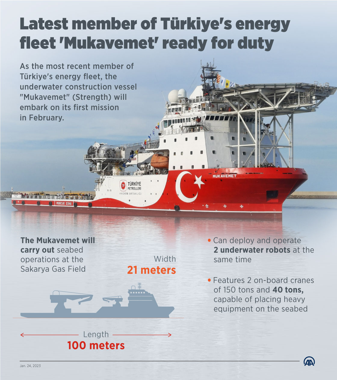 As the most recent member of Türkiye's energy fleet, the underwater construction vessel "Mukavemet" (Strength) will embark on its first mission in February.