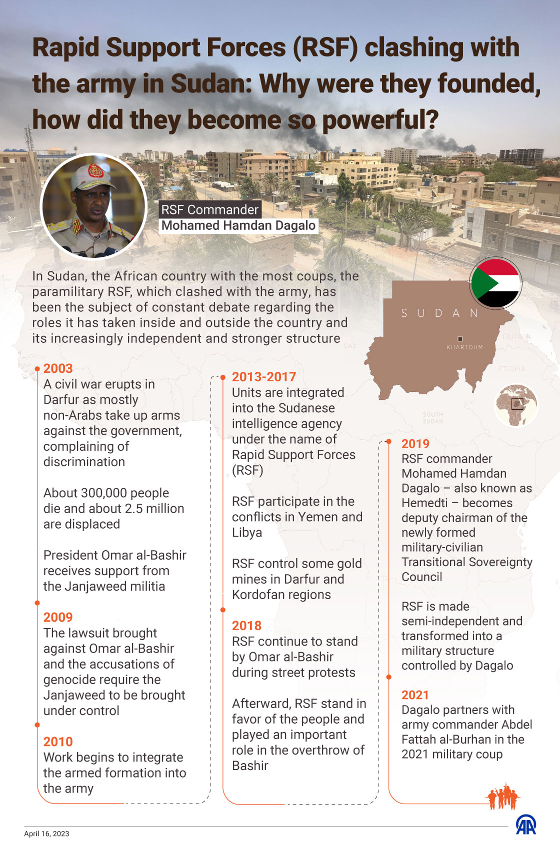In Sudan, the African country with the most coups, the paramilitary RSF, which clashed with the army, has been the subject of constant debate regarding the roles it has taken inside and outside the country and its increasingly independent and stronger structure17 April 2023•Update: 17 April 2023