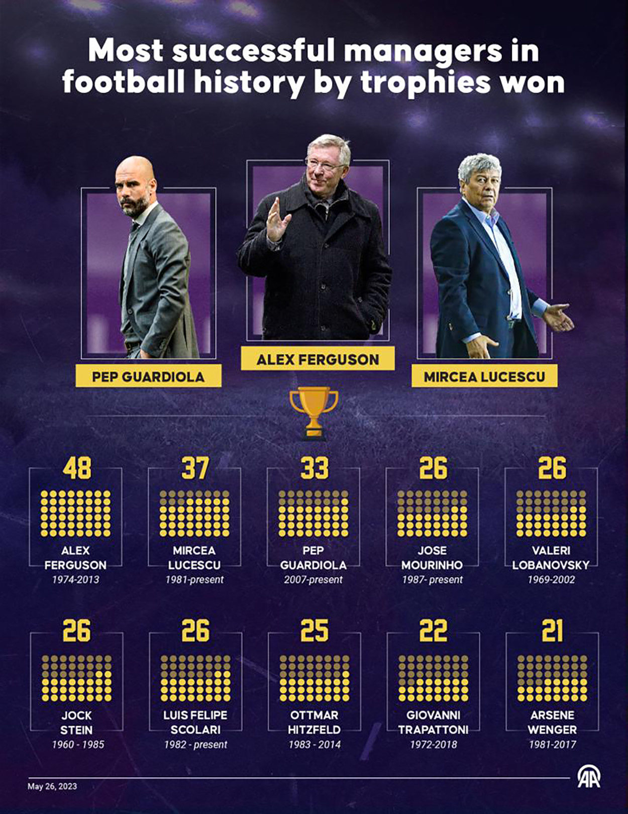 Most successful managers in football history by trophies won