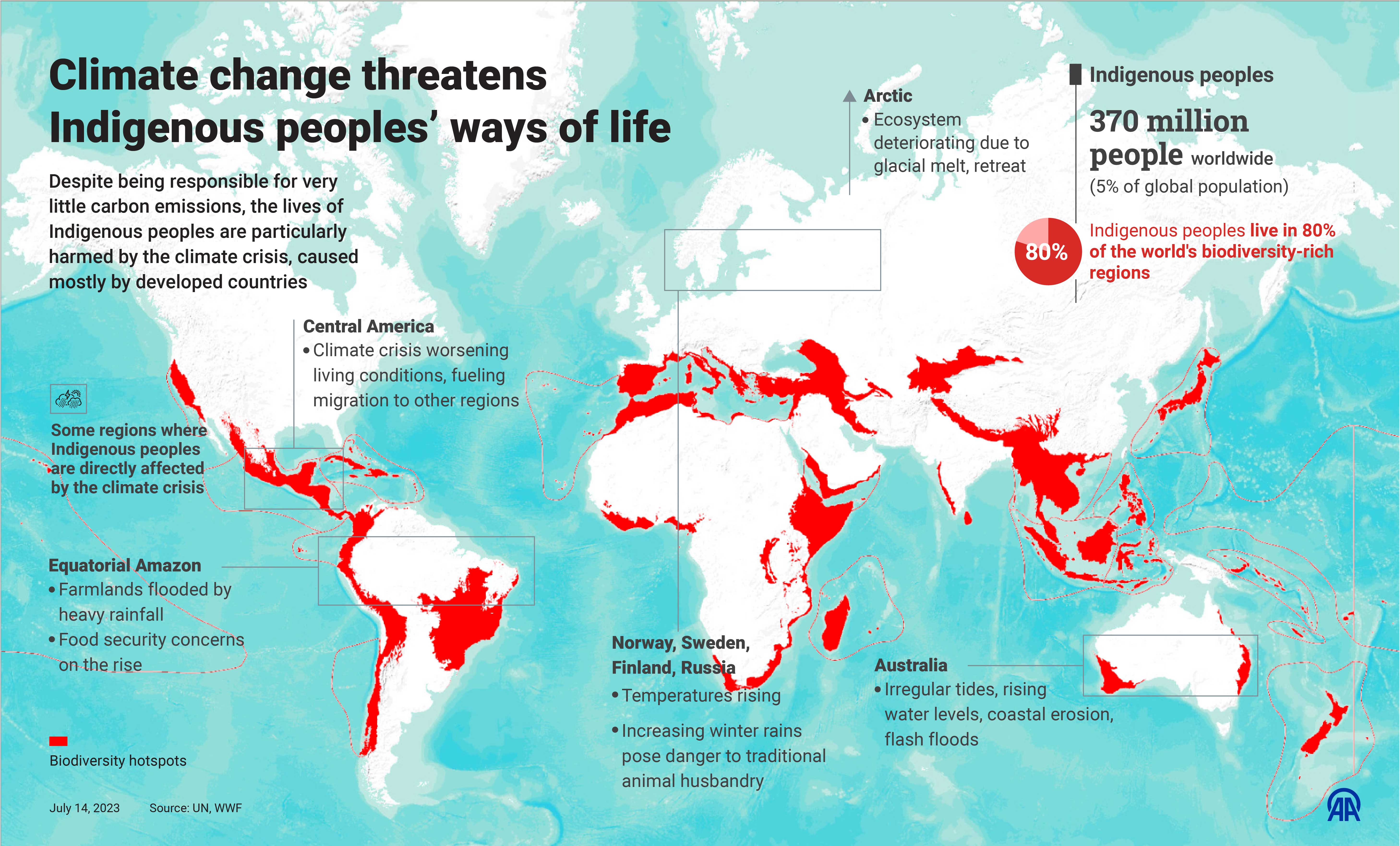Despite being responsible for very little carbon emissions, the lives of Indigenous peoples are particularly harmed by the climate crisis, caused mostly by developed countries14 July 2023•Update: 14 July 2023