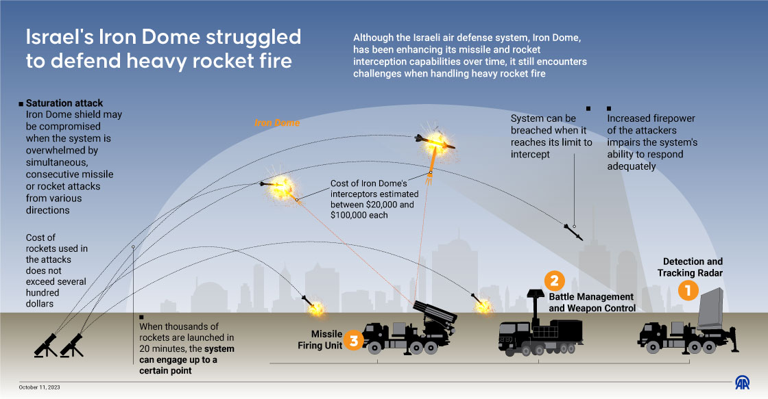 Israel's Iron Dome struggledto defend heavy rocket fire