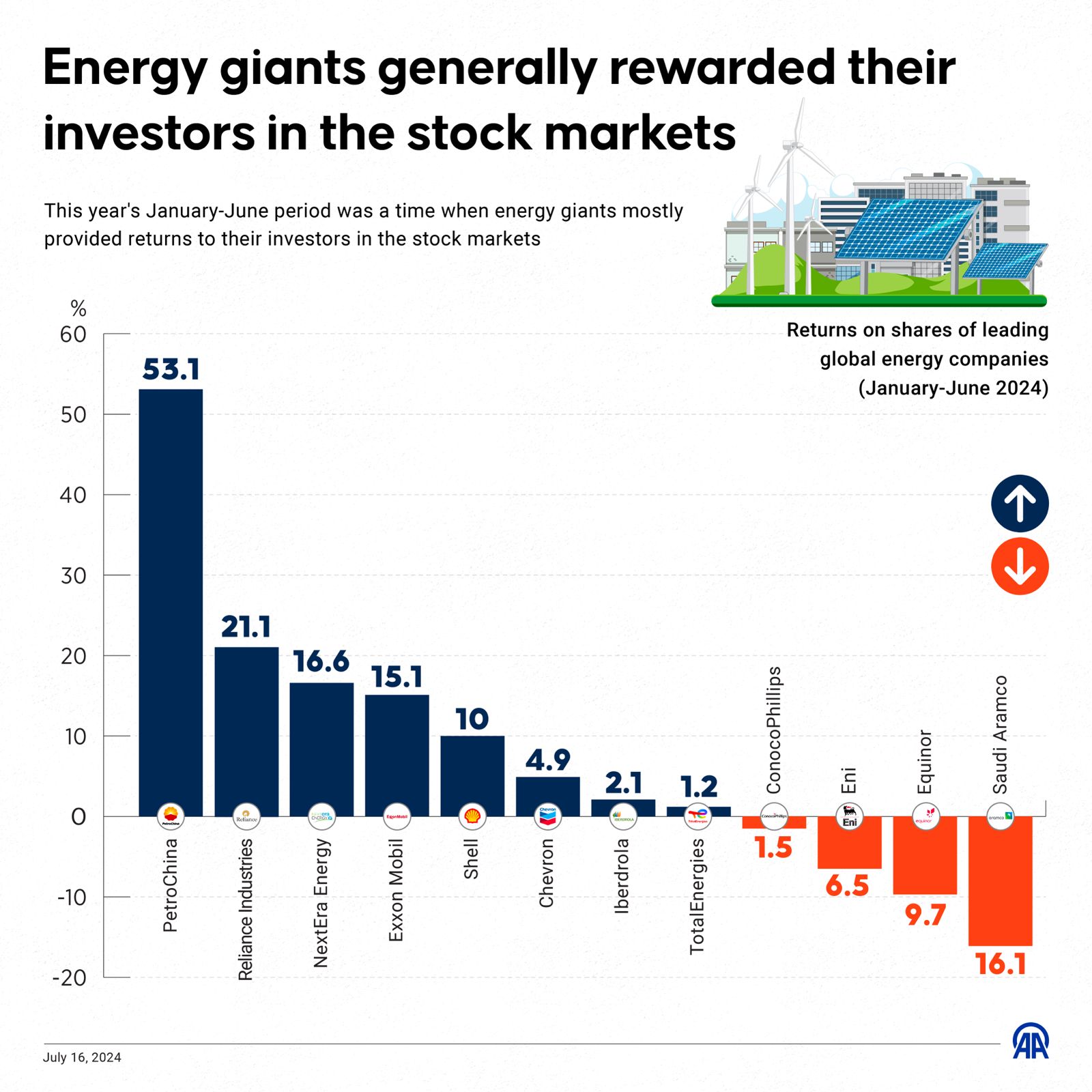 This year's January-June period was a time when energy giants mostly provided returns to their investors in the stock markets