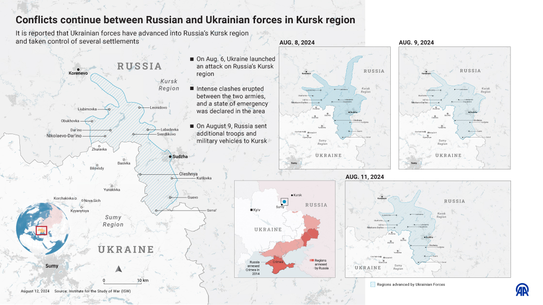 Conflicts continue between Russian and Ukrainian forces in Kursk region