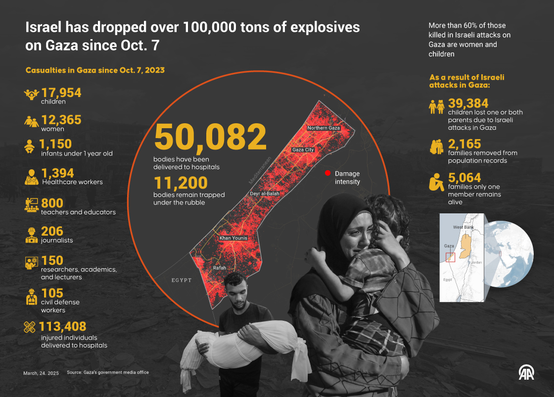 Israel has dropped over 100,000 tons of explosives on Gaza since Oct. 7, 2023