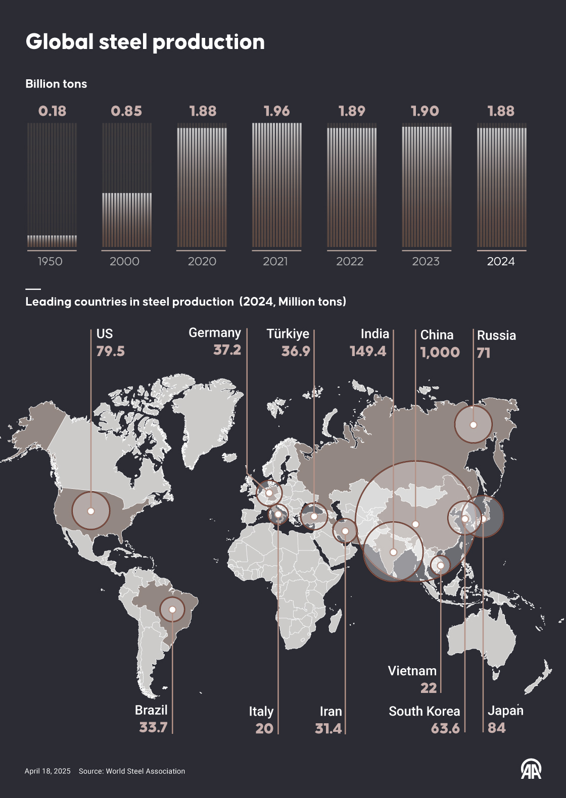 Global steel production