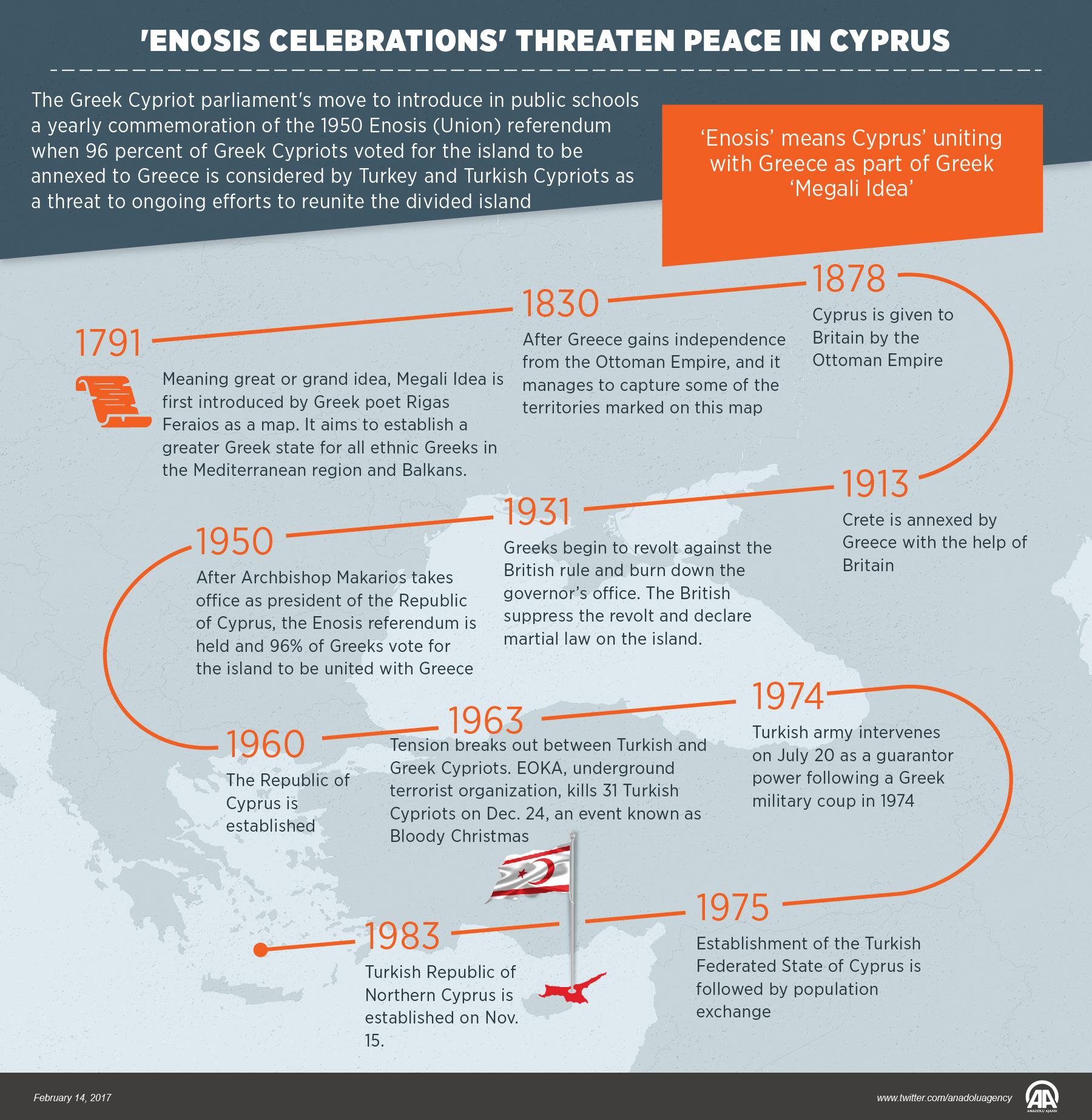 The Greek Cypriot parliament's move to introduce in public schools a yearly commemoration of the 1950 Enosis (Union) referendum when 96 percent of Greek Cypriots voted for the island to be annexed to Greece is considered by Turkey and Turkish Cypriots as a threat to ongoing efforts to reunite the divided island