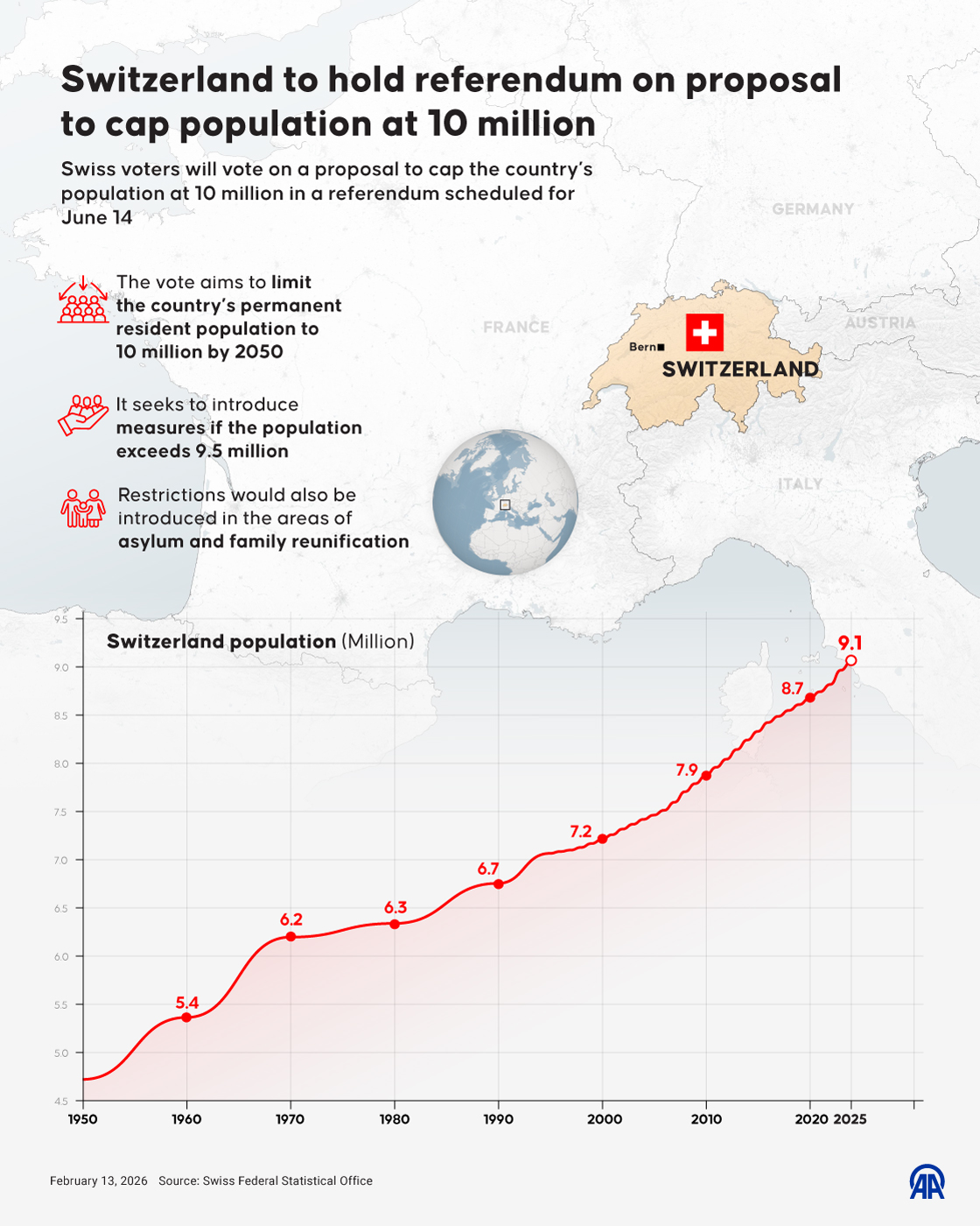 Switzerland to hold referendum on proposal to cap population at 10 million