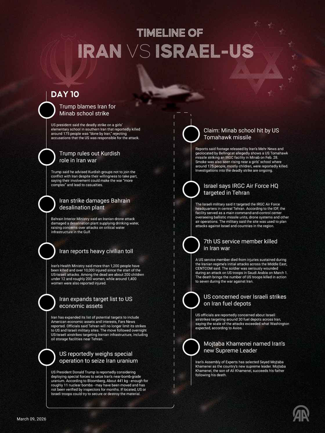 DAY 10 | Iran and Israel-US War Timeline (March 09, 2026)