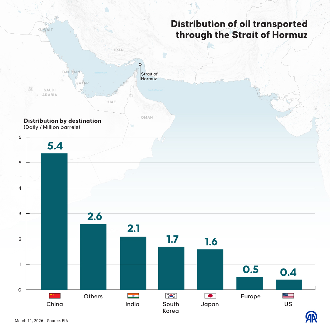 The Gulf region produces around 30 million barrels of oil per day, accounting for about one-third of the world’s total supply11 March 2026•Update: 11 March 2026