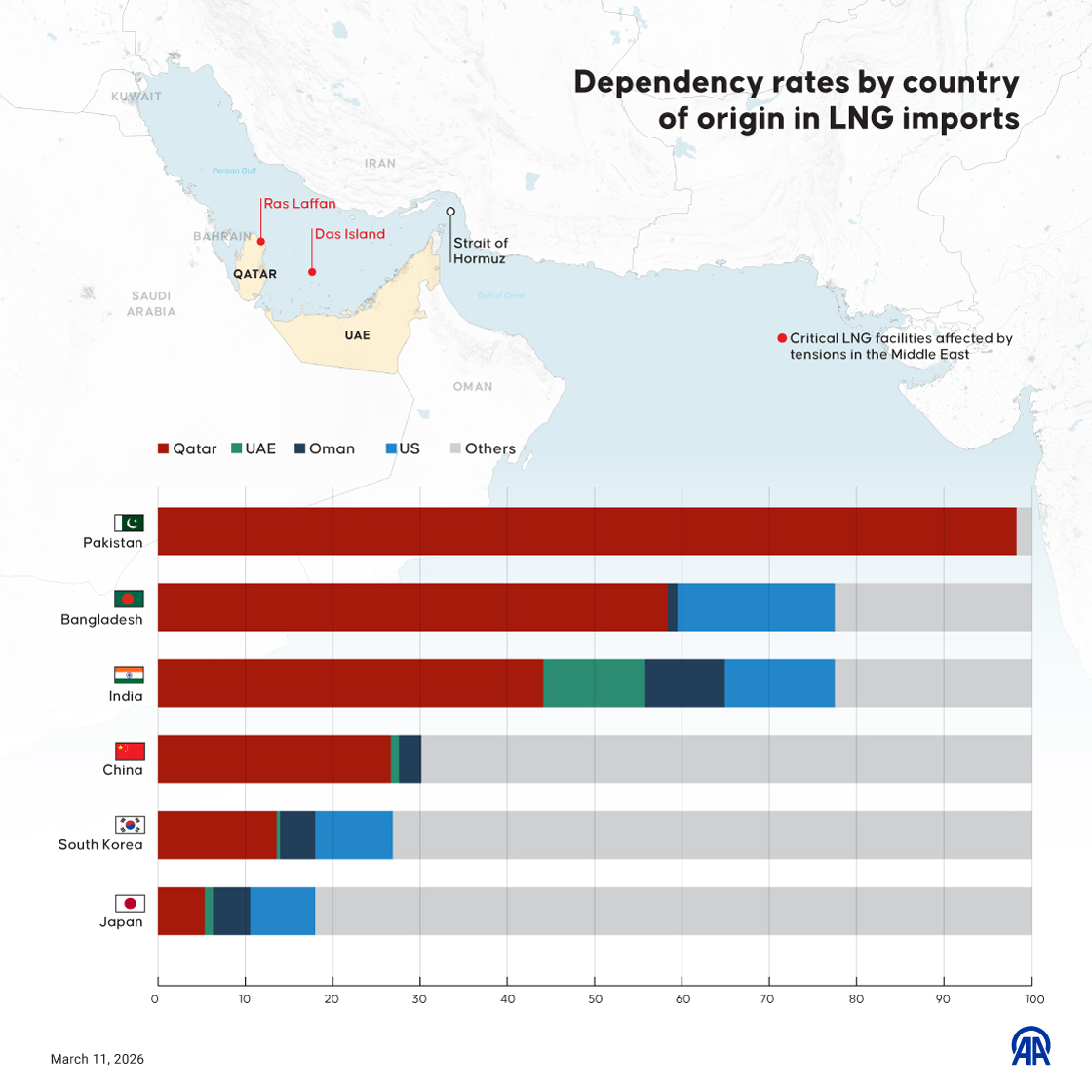 Dependency rates by country of origin in LNG imports highlight reliance on suppliers in the Gulf region