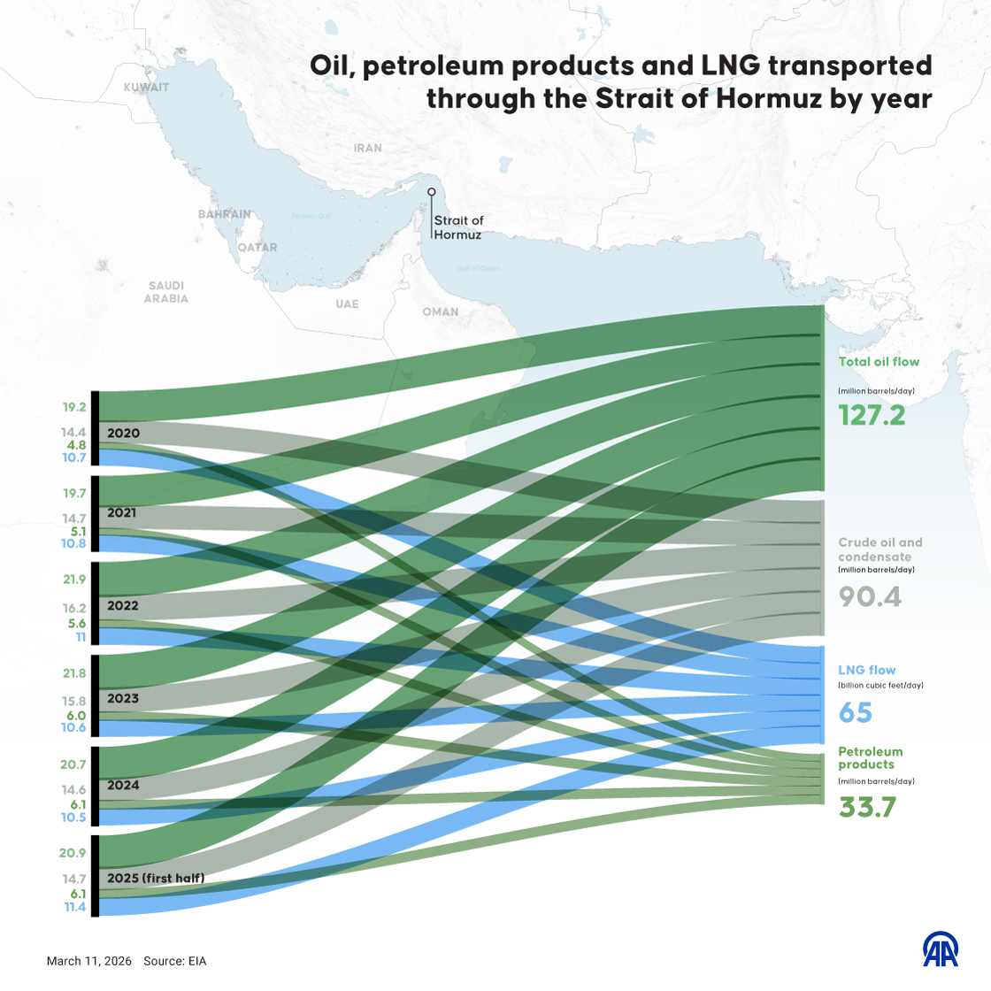 INFO-Oil, petroleum products and LNG transported through the Strait of Hormuz by year