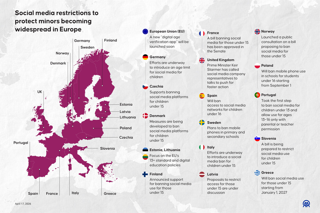 Across Europe, an increasing number of countries continue to work on new restrictions and regulations on social media use to reduce the risks caused by children and adolescents spending uncontrolled time online.Efnan İpşir
