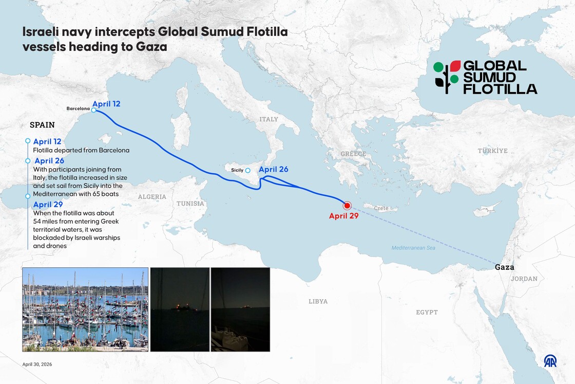 Israeli navy intercepts Global Sumud Flotilla vessels heading to Gaza