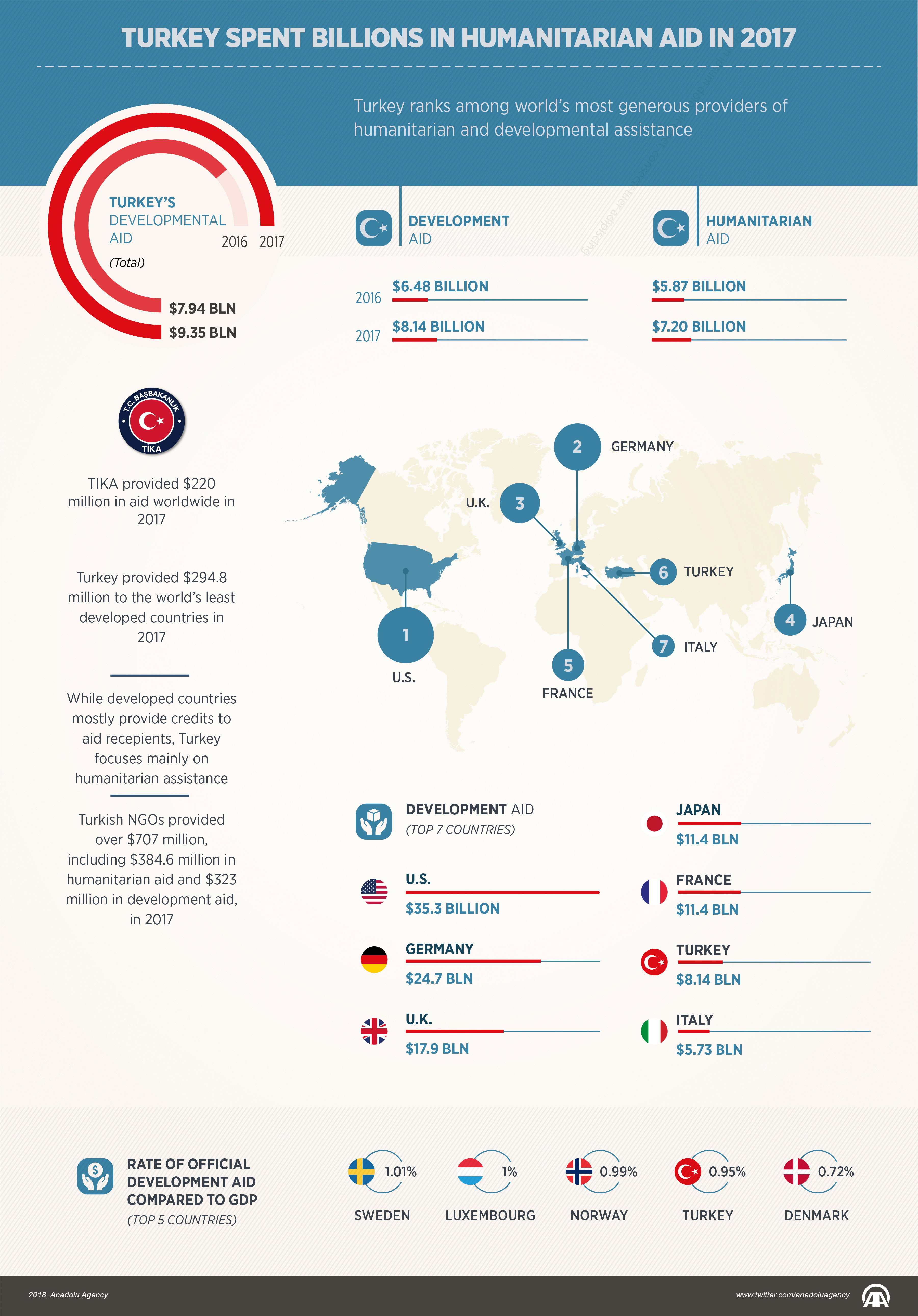 Turkey provided over $8 billion in developmental and humanitarian assistance around the globe in 2017