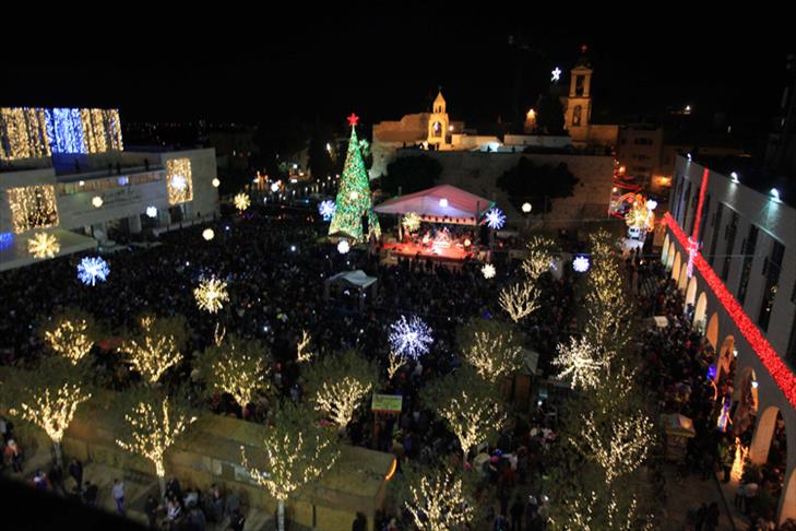 "I arrived from my village, Aboud, northern Ramallah, to watch the lights and ornaments of the Christmas tree," Grace Abdo, a Christian Palestinian female, told The Anadolu Agency as she and others took part in the event.