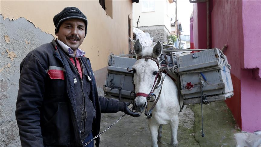 Mule and man forge friendship while rounding up rubbish