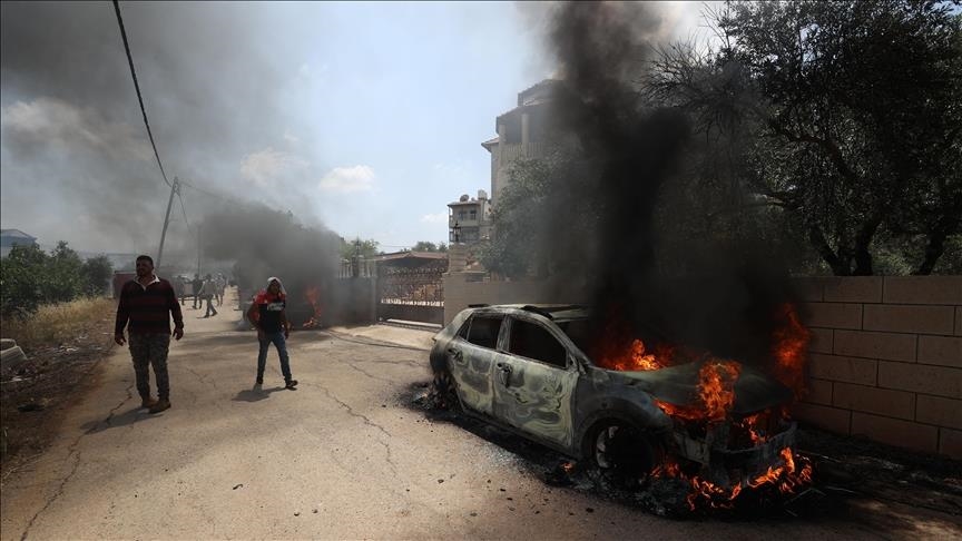 Three Palestinians were killed on Wednesday in the northern occupied West Bank after an Israeli drone hit their vehicle, causing a fire.