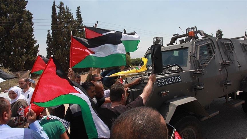 Demonstrators waved Palestinian flags and carried pro-Palestine banners, according to an Anadolu Agency correspondent covering the event.
