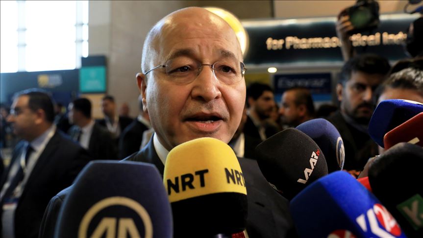 Iraqi President Barham Salih called for reducing tensions in the Middle East while highlighting the importance of combating terrorism.
