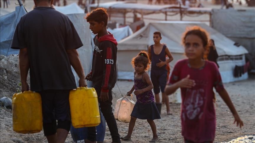 Displaced residents in the coastal strip of al-Mawasi near Khan Younis told Anadolu that they spend long days without a single drop of clean water, often waiting five to six days for distribution trucks to arrive.