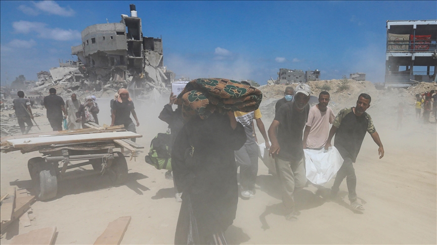 After the order was issued, thousands of Palestinians in Khan Younis were forced to embark on a new journey of displacement, walking on foot, carrying small bags on their backs and some essential items like blankets, mattresses, and a little food, according to an Anadolu correspondent.