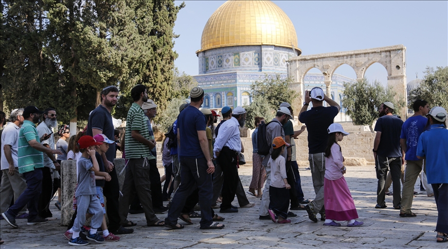 Hundreds of Israeli settlers forced their way into the Al-Aqsa complex on Sunday, amid tension over plans by settler groups to storm the flashpoint site to mark the anniversary of what they call the “destruction of the temple” in ancient times.