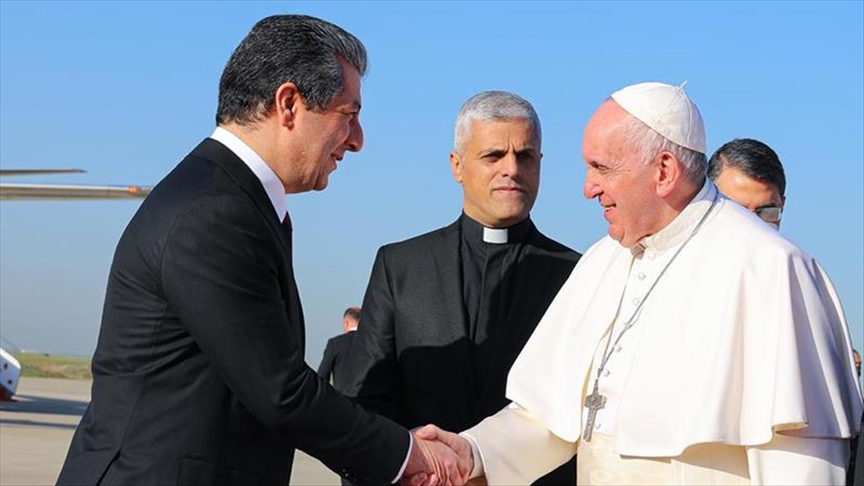 The pontiff was welcomed upon arrival by President of the Kurdish Regional Government (KRG) Nechirvan Barzani and Prime Minister Masrour Barzani, according to the state television.