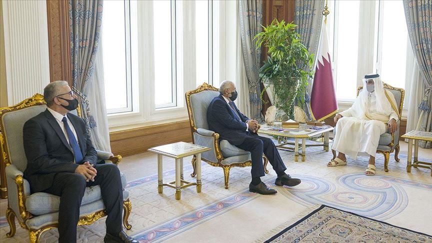 Qatar’s emir Sheikh Tamim bin Hamad Al-Thani held talks in Doha on Monday with a Libyan government delegation on the latest developments in the war-torn country, according to the official QNA news agency.