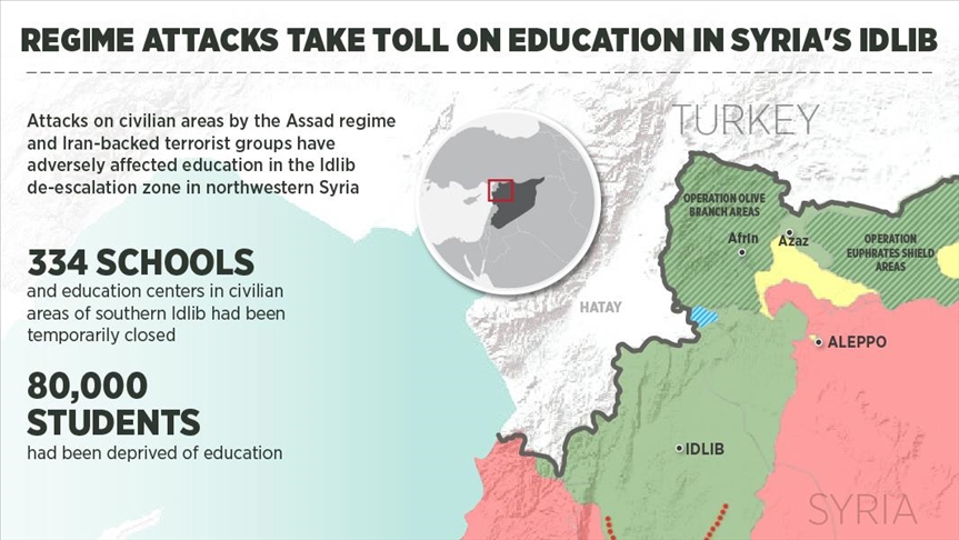 Attacks on civilian areas by the Assad regime and Iran-backed terrorist groups have adversely affected education in the Idlib de-escalation zone in northwestern Syria, a local education official said Monday.