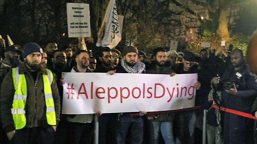 Hundreds of people in various cities of the world have gathered Tuesday to protest Assad regime forces' and its supporters' attacks on civilians and the humanitarian plight in Aleppo.