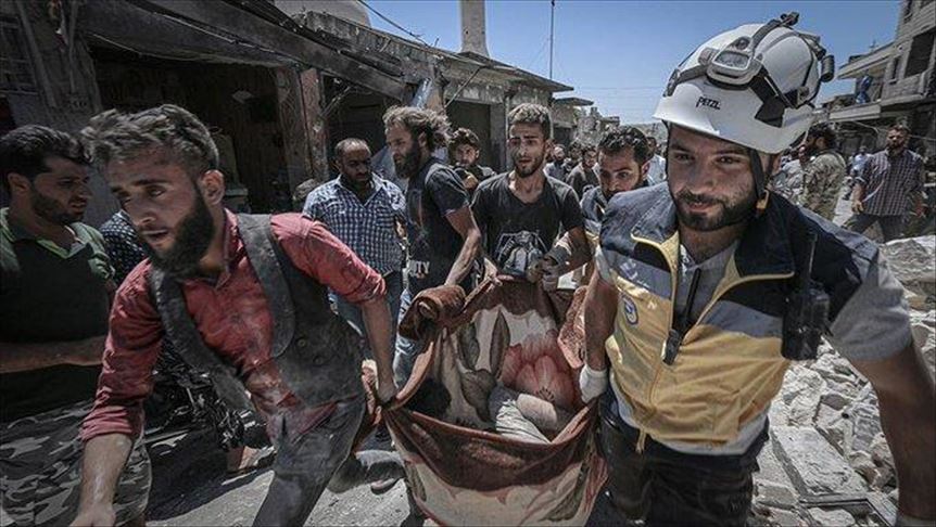 Three people were killed in the town of Maarat Al-Numan and three in the town of Hesh, Mustafa Haj Youssef, director of the White Helmets in Idlib, told Anadolu Agency.