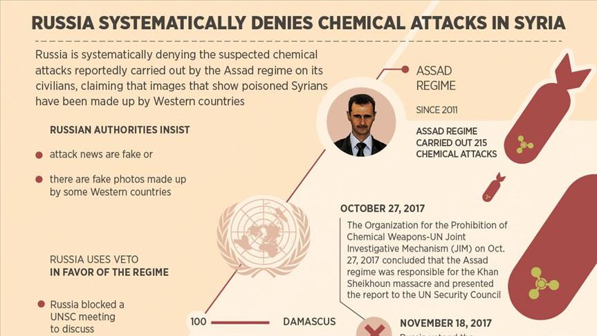 Russia is systematically denying the suspected chemical attacks reportedly carried out by the Bashar al-Assad regime on its civilians, claiming that images that show poisoned Syrians have been made up by Western countries.