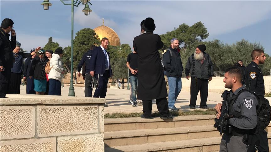 Scores of Israeli settlers forced their way into East Jerusalem’s flashpoint Al-Aqsa Mosque compound on Wednesday, according to a Palestinian official.