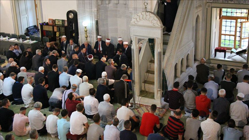 The historical Mustafa Pasha Mosque in the capital Skopje was filled with believers.