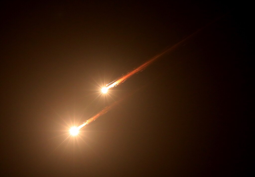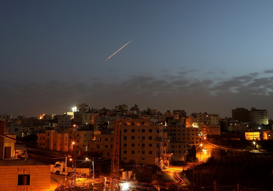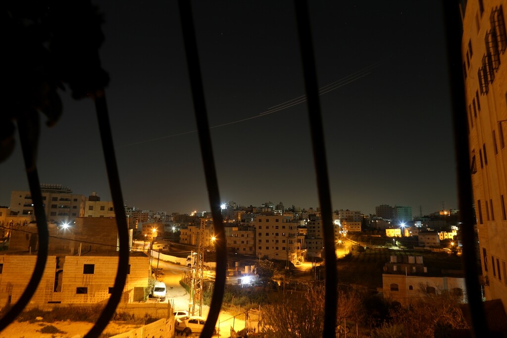Missiles launched by Iran in retaliation for attacks by the United States and Israel are seen in the skies over Hebron, Palestine on April 06, 2026.