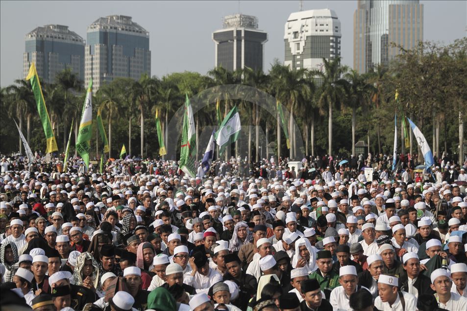 JAKARTA, INDONESIA - NOVEMBER 9: Thousands of Muslims attend the celebration of the Birthday of the Prophet Muhammad in the area of the National Monument, Jakarta, Indonesia on Saturday 9 November 2019.