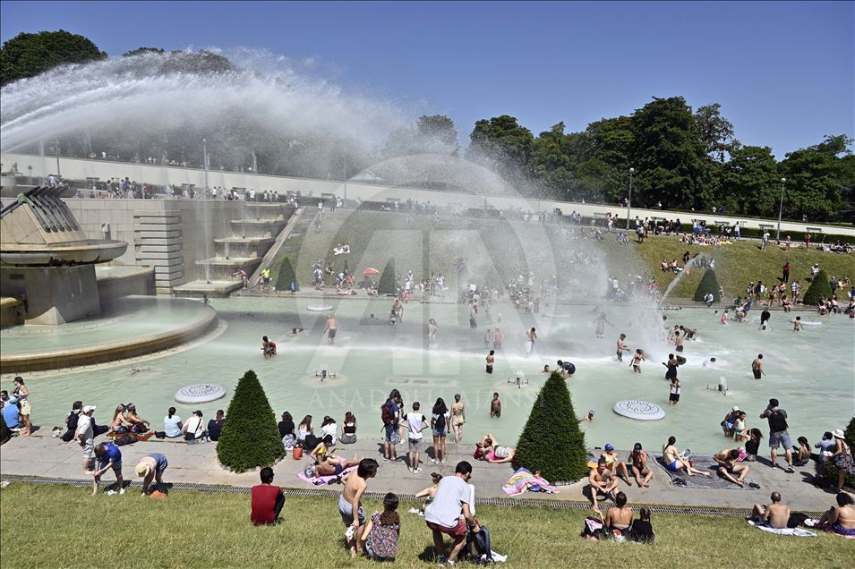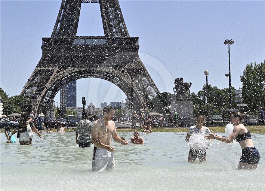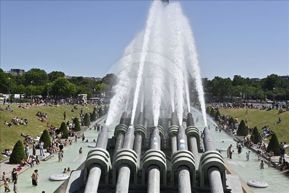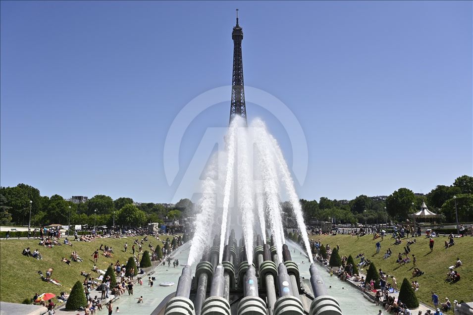 2019 Eiffel Tower fountains France heatwave June Paris Trocadero