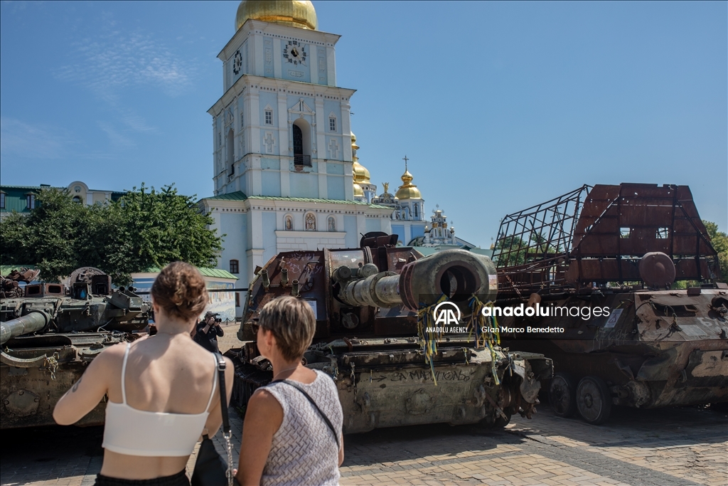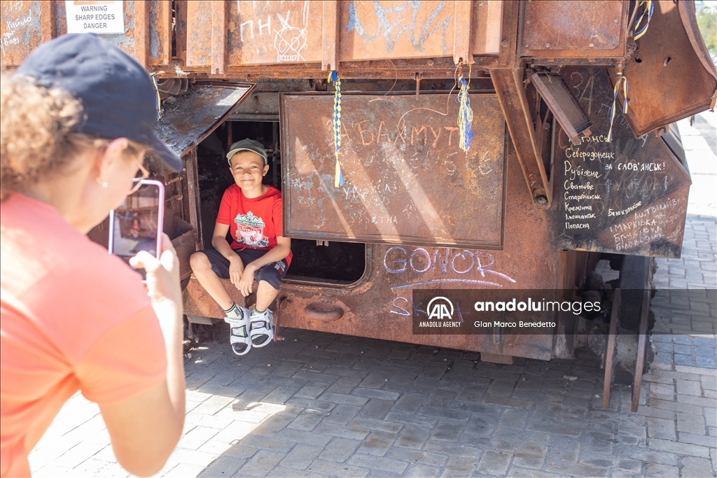 KYIV OBLAST, UKRAINE - JULY 27: Burnt down tanks attract tourists amid Russia and Ukraine war in Kyiv Oblast, Ukraine on July 27, 2023. While the war between Russia and Ukraine continues, some companies to invite tourists to visit Ukraine and see what it is like to live in the midst of war through war tourism. War tourism, which is a controversial issue in the country, is considered by some to be disrespectful to the victims of war, while others believe that it is important to remember history and learn from it. ( Gian Marco Benedetto - Anadolu Agency )Gian Marco Benedetto