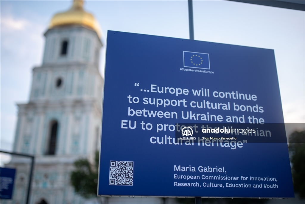 KYIV OBLAST, UKRAINE - JULY 27: A view of a EU sign amid Russia and Ukraine war in Kyiv Oblast, Ukraine on July 27, 2023. While the war between Russia and Ukraine continues, some companies to invite tourists to visit Ukraine and see what it is like to live in the midst of war through war tourism. War tourism, which is a controversial issue in the country, is considered by some to be disrespectful to the victims of war, while others believe that it is important to remember history and learn from it. ( Gian Marco Benedetto - Anadolu Agency )Gian Marco Benedetto