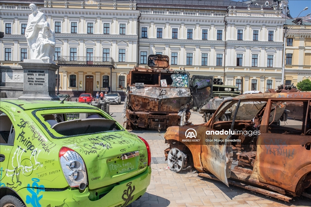 KYIV OBLAST, UKRAINE - JULY 27: Burnt down cars are on display on a street amid Russia and Ukraine war in Kyiv Oblast, Ukraine on July 27, 2023. While the war between Russia and Ukraine continues, some companies to invite tourists to visit Ukraine and see what it is like to live in the midst of war through war tourism. War tourism, which is a controversial issue in the country, is considered by some to be disrespectful to the victims of war, while others believe that it is important to remember history and learn from it. ( Gian Marco Benedetto - Anadolu Agency )Gian Marco Benedetto