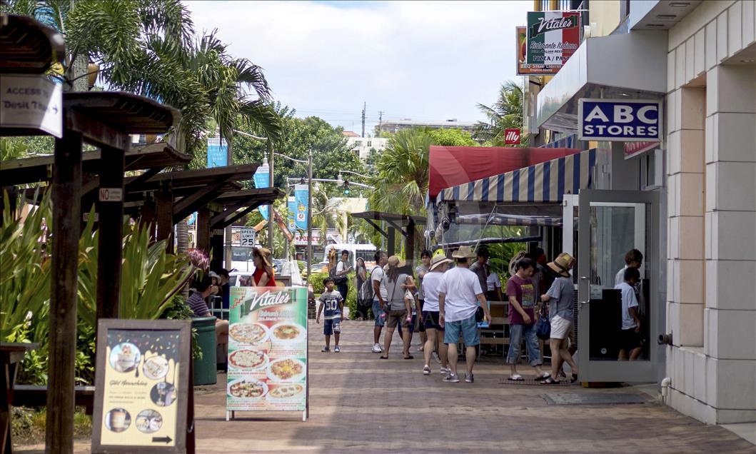 TUMON, GUAM - AUGUST 16: People, mostly include tourists, is seen in the streets in Tumon, Guam on August 16, 2017. With the threat of missiles from North Korea the number of tourists have dropped slightly, and while the rest of the world is uneasy, island residents continue on with their daily lives. Henri Oftana