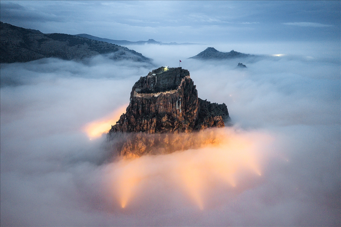 AFYONKARAHISAR, TURKIYE - DECEMBER 25: An aerial view of Afyonkarahisar Castle, one of the city's popular landmarks, is shrouded in dense morning fog in Afyonkarahisar, Turkiye on December 25, 2025. ( Seyit Konyalı - Anadolu Agency )Seyit Konyalı