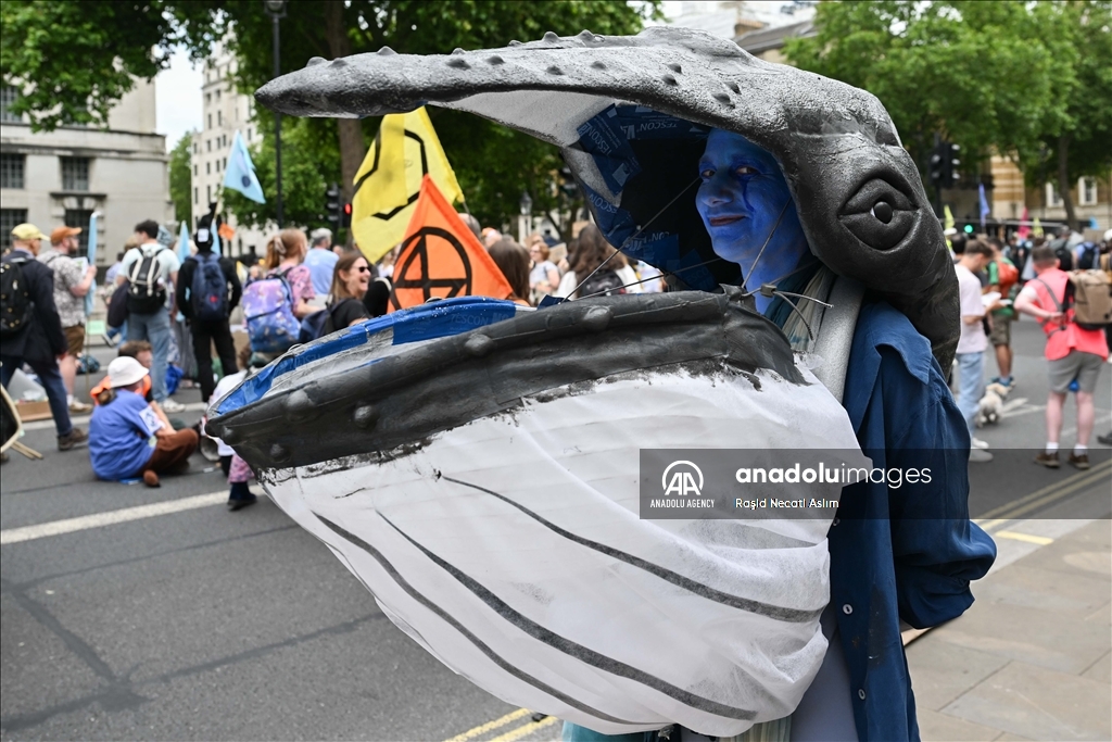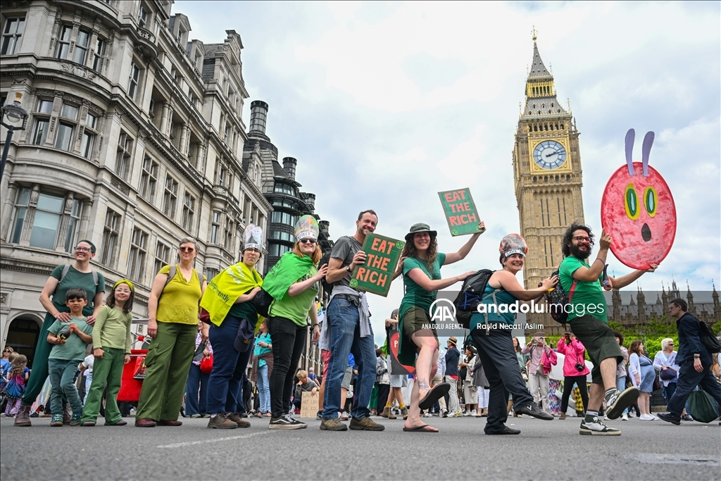 LONDON, UNITED KINGDOM - JUNE 22, 2024: Environmental activists gather to take part in "Restore Nature Now" march as they call on the next government to take decisive steps to tackle the biodiversity crisis in London, United Kingdom on June 22, 2024. ( Raşid Necati Aslım - Anadolu Agency )