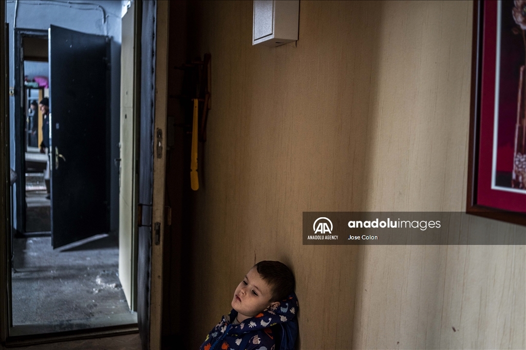 ZAPORIZHZHIA, UKRAINE - OCTOBER 10: A child is seen inside a damaged building after Russian missile attack in Zaporizhzhia, Ukraine on October 10, 2022. Today, the head of the city's military administration Oleksandr Starukh, reported to the Ukrinform Ukrainian news agency that a multi-storey building was destroyed as a result of a new rocket attack on the city center of Zaporizhzhia. ( Jose Colon - Anadolu Agency )Jose Colon