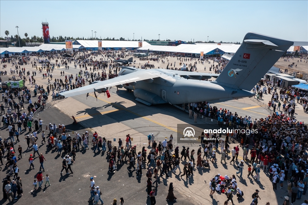 ADANA, TURKIYE - OCTOBER 3: People visit the area of Turkish Aerospace Industries (TUSAS) on the second day of Turkiye's premier technology and aerospace event TEKNOFEST, held at Adana Airport in Adana, Turkiye on October 3, 2024. The four-day event will feature competitions, air shows, exhibitions and workshops. The event has been organized by the Turkish Technology Team (T3) Foundation and the Turkish Industry and Technology Ministry jointly since 2018, in cooperation with dozens of ministries, public institutions, private firms, and universities. ( Ali Kemal Zerenli - Anadolu Agency )Ali Kemal Zerenli