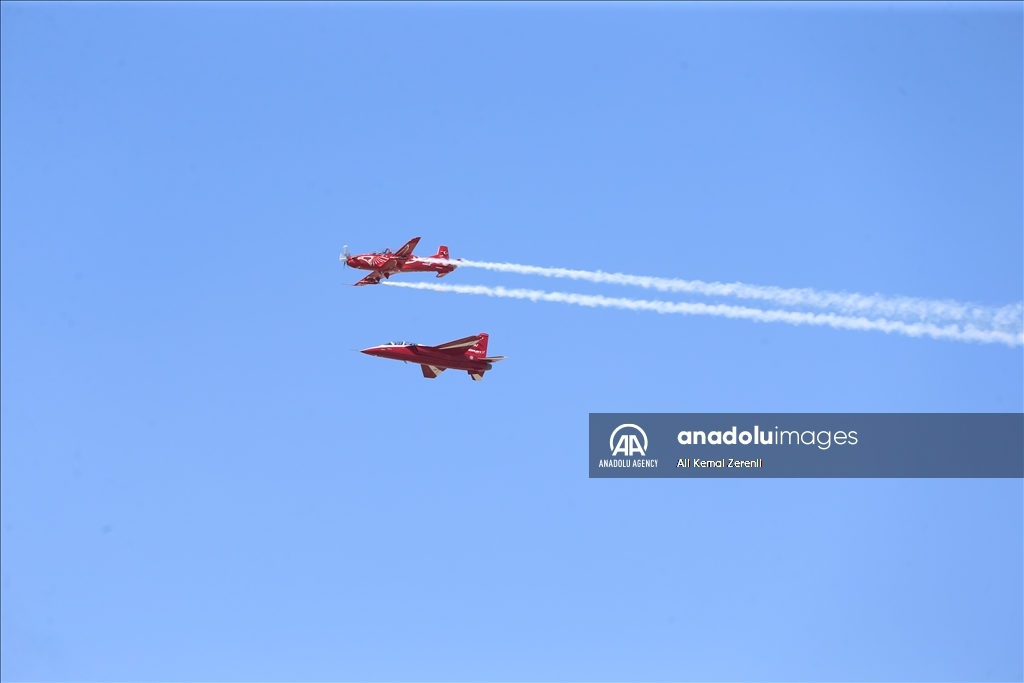 ADANA, TURKIYE - OCTOBER 3: HURJET and HURKUS perform on the second day of Turkiye's premier technology and aerospace event TEKNOFEST, held at Adana Airport in Adana, Turkiye on October 3, 2024. The four-day event will feature competitions, air shows, exhibitions and workshops. The event has been organized by the Turkish Technology Team (T3) Foundation and the Turkish Industry and Technology Ministry jointly since 2018, in cooperation with dozens of ministries, public institutions, private firms, and universities. ( Ali Kemal Zerenli - Anadolu Agency )Ali Kemal Zerenli