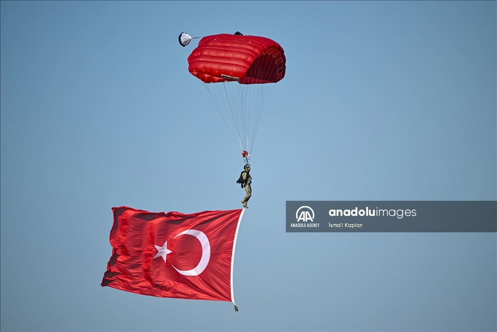 Parachute jumping performance held at Turkiye's premier technology and aerospace event TEKNOFEST, during its second day at Adana Airport in Adana, Turkiye on October 3, 2024